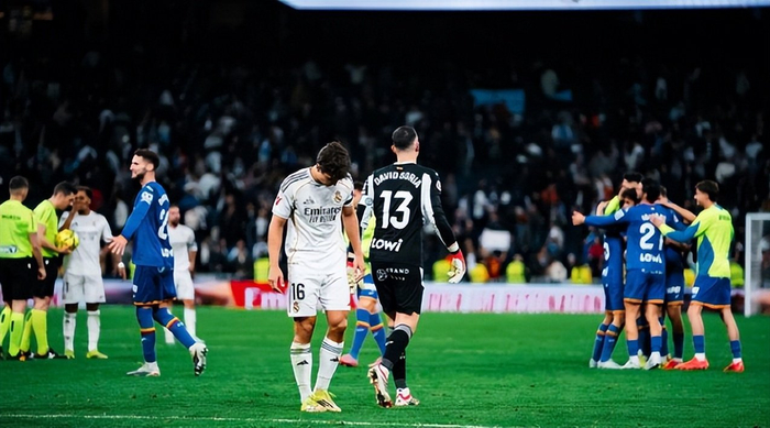 下半场,被逼到绝境的皇马发起疯狂反扑,阿韦洛亚在55分钟连换三人,用卡瓦哈尔、赫伊森、罗德里戈替换阿诺德、阿拉巴、蒂亚戈·皮塔奇,试图加强进攻火力,但皇马的进攻依旧缺乏效率。第75分钟,皇马获得右路角球机会,吕迪格前点头球攻门,后点跟进的赫伊森错失绝佳接力机会;第80分钟,马斯坦托诺右路传中,罗德里戈俯身头球冲顶被索里亚扑出,卡瓦哈尔跟进补射也未能命中目标;第90分钟,马斯坦托诺禁区右侧小角度打门,依旧被索里亚化解,皇马的多次反扑均与进球擦肩而过,空有79%的控球率。